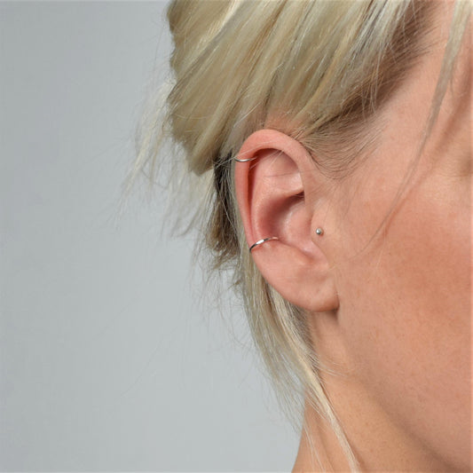 Made for smaller piercings and everyday comfort, this collection of cartilage jewellery is designed to sit neatly and securely in place. Handmade in Glasgow, Scotland using recycled sterling silver and 9ct gold, each piece is created with simplicity, durability and wearability in mind.