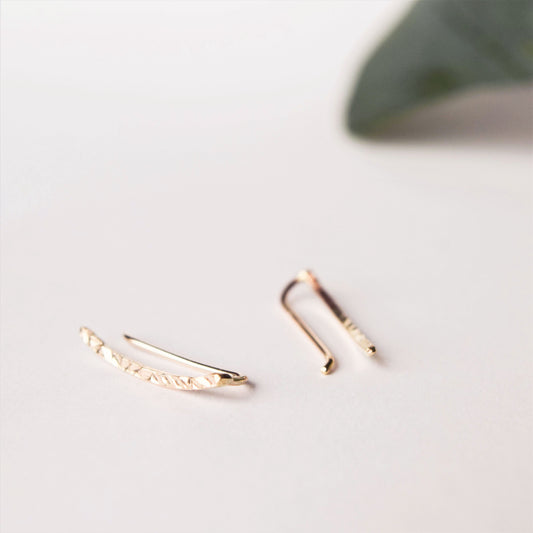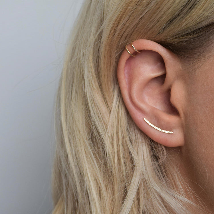 The collection includes both hammered and smooth finishes, allowing light to catch across the surface or remain softly understated depending on the style. Lightweight and comfortable, ear climbers sit neatly along the ear, creating the effect of multiple piercings with a single piece.
